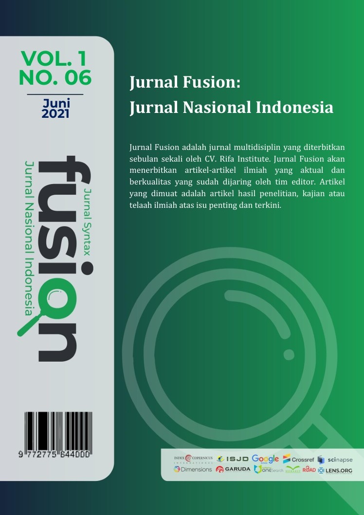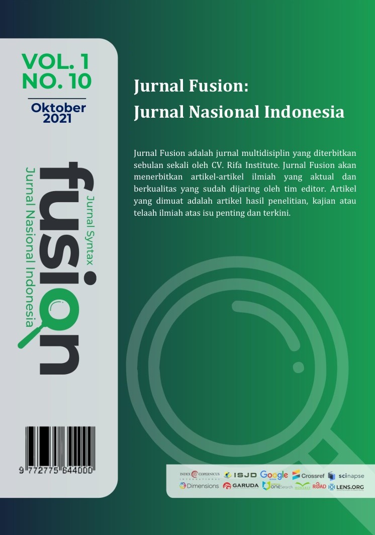 Vol. 1 No. 05 (2021)The Fusion Journal is a multidisciplinary journal published once a month by CV. Rifa Institute. The Fusion journal will publish actual and quality scientific articles that have been netted by a team of editors. Articles published are articles from research, studies or scientific studies on important and current issues.