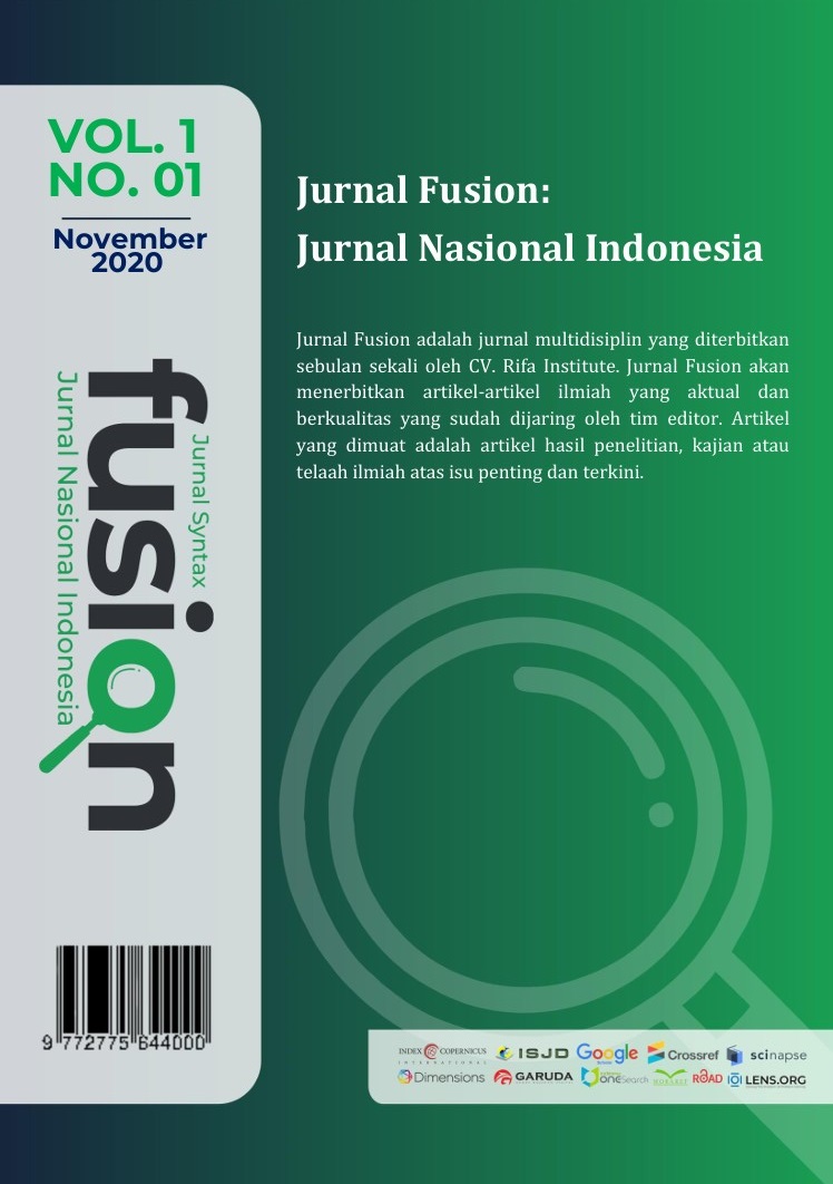 Vol. 1 No. 03 (2021)The Fusion Journal is a multidisciplinary journal published once a month by CV. Rifa Institute. The Fusion journal will publish actual and quality scientific articles that have been netted by a team of editors. Articles published are articles from research, studies or scientific studies on important and current issues.